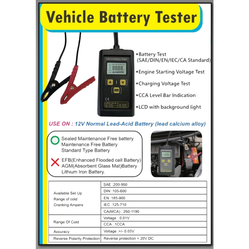 CCA test (cold cranking ampers) SAE , DIN, EN, IEC AND CA (MCA) standard