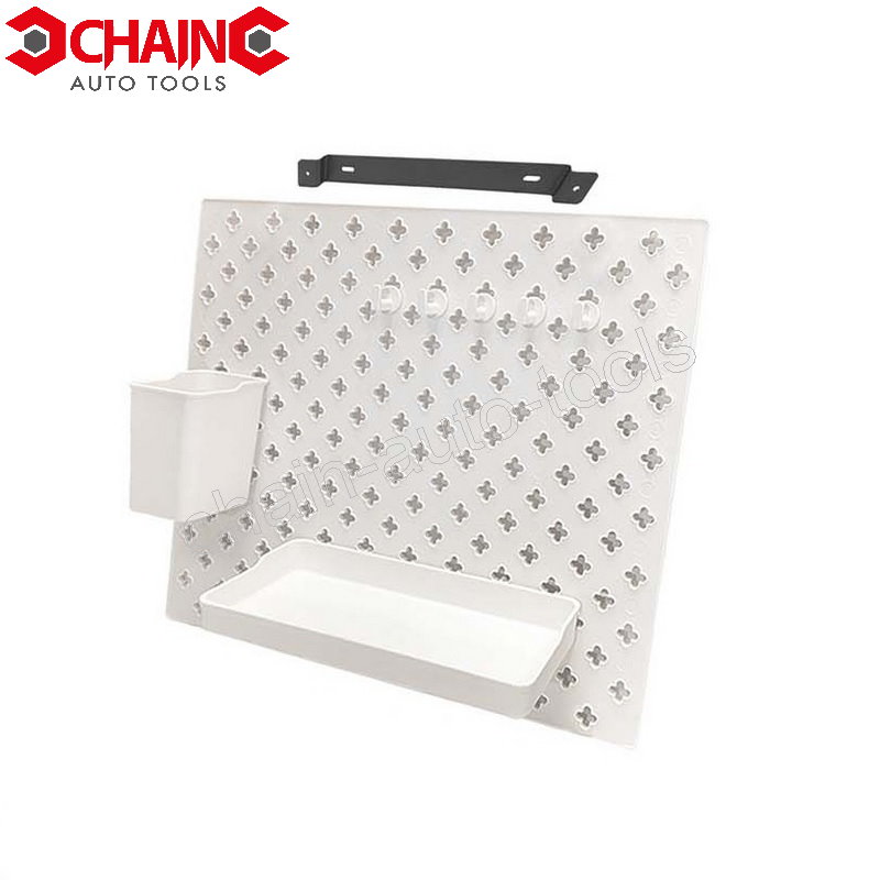 MATERIALS: ABS, METALSIZE: 43.5x12.0x35.5 CMCOLOR: WHITECONTECTS: 1PC PEGBOARD PANEL 1PC WALL MOUNTING RAIL 1PC RECTANGULAR SHELF TRAY 1PC SQUARE STORAGE BOX 5PC UTILITY HOOKS