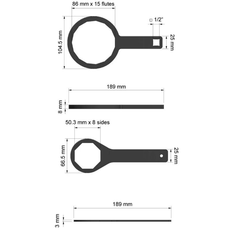 * Specification for big filter wrench: 86 mm X 15 flutes