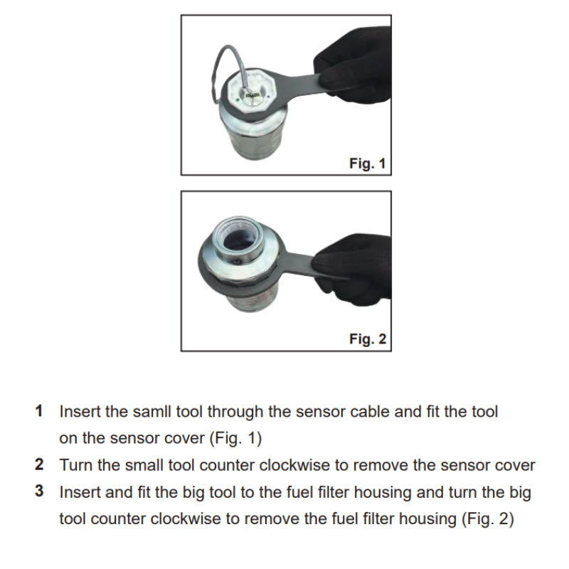 * 2 Pieces wrench set for removing diesel fuel filter housings while protecting the sensors
